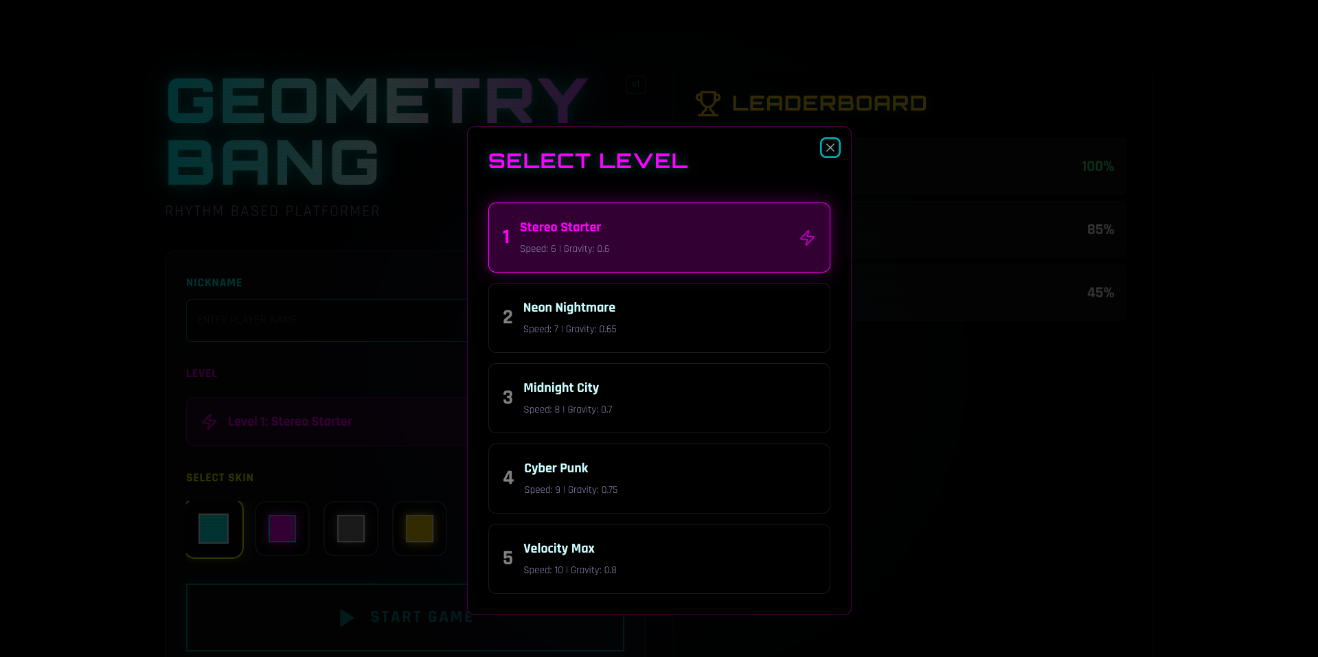 Sei pronto alla sfida definitiva? Metti alla prova i tuoi riflessi in questo frenetico platform arcade ispirato ai grandi classici del ritmo e della geometria! Salta, schiva e sopravvivi attraverso livelli sempre più difficili e veloci.